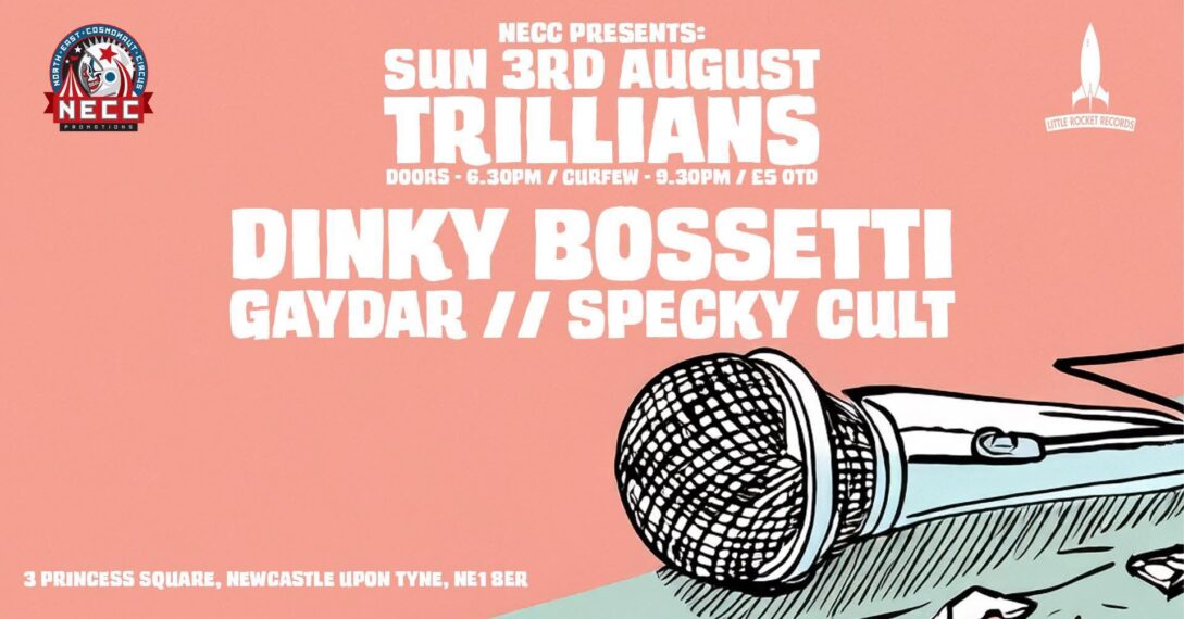 We are excited to be playing at Trillians in Newcastle, in association with North East Cosmonaut Circus (NECC) promotions. Full lineup: